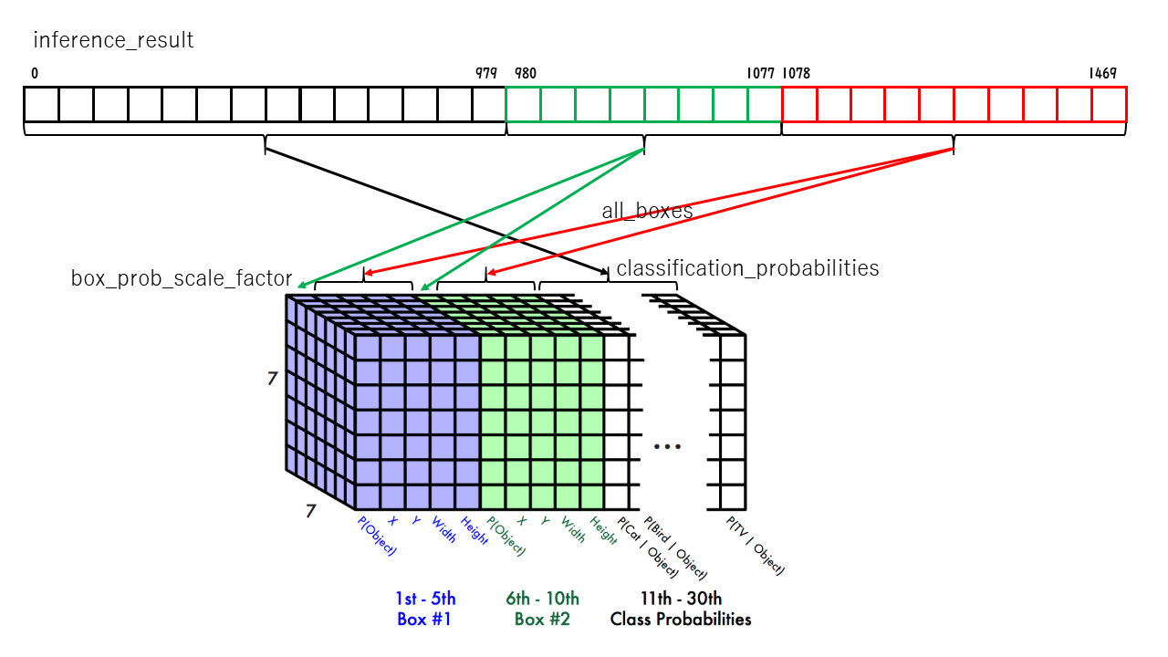 all_probabilities は Grid_Y × Grid_X × BBox × NumClass の4次元配列。
